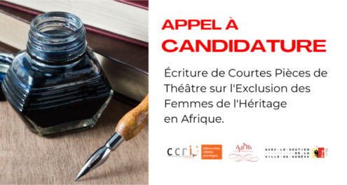 La Compagnie Apsara (Suisse), en partenariat avec le Centre Culturel de Rencontre International John Smith à Ouidah, invite les jeunes auteur.es béninois.es et d’Afrique francophone, à soumettre leur candidature pour l’écriture de courtes pièces de théâtre d’une durée comprise entre 20 et 30 minutes, sur la thématique de l’exclusion des femmes dans l’héritage en Afrique. Le présent appel est ouvert aux jeunes de 35 ans au plus.