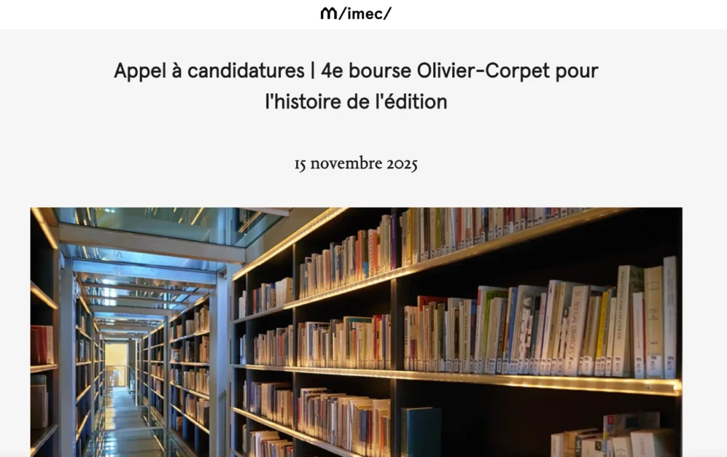 Appel à candidature 2026 4ème Bourse de recherche IMEC/Olivier-Corpet pour l’histoire de l’édition 2