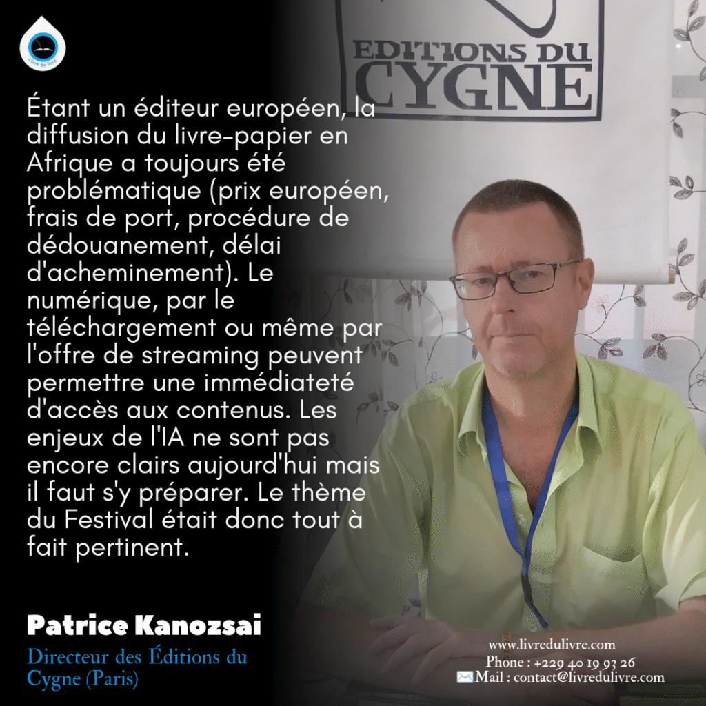 Festival International du Livre et des Arts Assimilés du Bénin 2025 : le témoignage de Patrice Kanozsai, directeur des Éditions du Cygne (Paris)