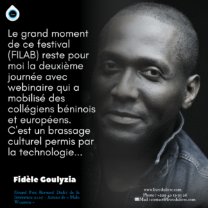 Le grand moment de ce festival reste pour moi la deuxième journée, marquée par un webinaire qui a mobilisé à la fois des collégiens béninois et européens. Ce fut un brassage culturel remarquable, rendu possible par la technologie, et porteur d’un message fort sur la rencontre entre les cultures par le livre.