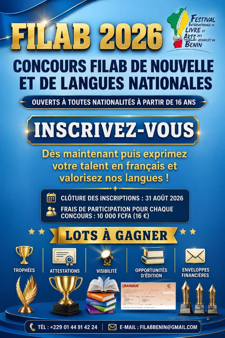 Avec ces concours, le FILAB 2026 confirme sa volonté de faire du livre un levier de création, de transmission et de paix, en mettant en lumière la richesse des expressions littéraires et linguistiques du Bénin et du continent africain.
