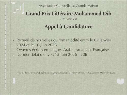 Avis d’appel à candidature  Grand Prix Littéraire Mohammed Dib 10e Session