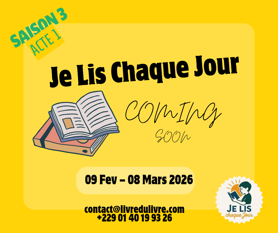 Du 09 février au 08 mars 2026, l’association L’ivre Du Livre relance, sur les réseaux sociaux, l’acte 1 de la saison 3 du challenge #Je_Lis_Chaque_Jour, une initiative dédiée à la promotion de la lecture quotidienne à travers un défi simple : lire un livre par semaine pendant quatre semaines consécutives et en partager une note de lecture.