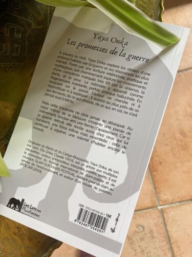 Yaya Onka ─ de son vrai nom Eta Onka Claude YAYA ─ est originaire du Bénin et du Congo-Brazzaville. Amoureux des arts et des lettres, il est auteur-compositeur-interprète, peintre, poète, directeur artistique. Promoteur du festival International de slam-poésie et de musique : SLAM SUR MARS FESTIVAL, il milite pour un slam au service de l’environnement. En 2019, il publie un recueil de slam-poésie : 3POL’AIR. En 2021, il crée et produit en live pour la première fois au Congo le « Jazz Slam Rétro Mood and look années 60 et 80 », un spectacle qu’il présente en tournée à travers le Bénin, le Sénégal, le Burkina Faso et l’Ile Maurice. Son style mêle musique du monde et slam engagé. Les promesses de la guerre est un premier récit d’une forte intensité.